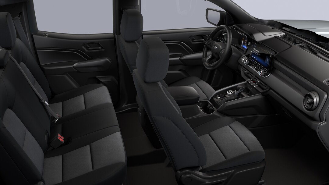 Step inside the 2026 Colorado's spacious crew cab and you'll find a well-crafted interior built for comfort and convenience. The supportive front bucket seats offer ample adjustability, while available leather upholstery adds a touch of luxury. Rear passengers will appreciate the generous legroom and amenities such as heated seats and dual-zone climate control. Plus, the interior sports many storage areas for your gear.