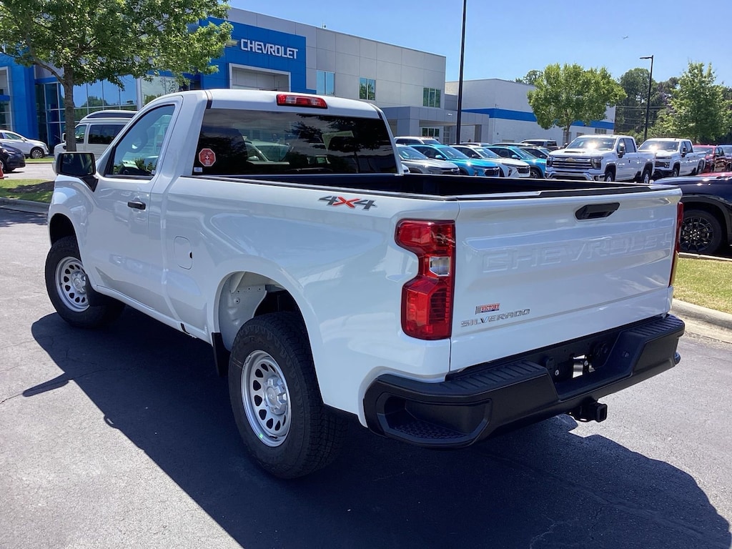 8-Speed Automatic, 4WD, Jet Black Vinyl, Preferred Equipment Group 1WT, Standard Suspension Package, Trailering Package, Work Truck Package, WT Convenience Package, WT Value Package, 2 Speakers, 2-Speaker Audio System, 220 Amp Alternator, 3.42 Rear Axle Ratio, 3.5 Monochromatic Display Driver Info Center, 4-Way Manual Driver Seat Adjuster, 4-Wheel Disc Brakes, 40/20/40 Front Split Bench Seat, ABS brakes, Air Conditioning, Apple CarPlay/Android Auto, Auto High-beam Headlights, Auto-Locking Rear Differential, Automatic Emergency Braking, Black (Semi-Gloss) Front Bumper, Black (Semi-Gloss) Rear Bumper, Bluetooth® For Phone, Brake assist, Compass, Deep-Tinted Glass, Delay-off headlights, Driver door bin, Dual front impact airbags, Dual front side impact airbags, Electric Rear-Window Defogger, Electronic Cruise Control, Electronic Stability Control, Emergency communication system: OnStar, Following Distance Indicator, Forward Collision Alert, Front anti-roll bar, Front Center Armrest w/Storage, Front Frame-Mounted Black Recovery Hooks, Front Pedestrian Braking, Front reading lights, Front wheel independent suspension, Fully automatic headlights, HD Rear Vision Camera, Heated door mirrors, Heated Power-Adjustable Outside Mirrors, Heavy-Duty Air Filter, Hitch Guidance, Illuminated entry, Locking Tailgate, Low tire pressure warning, Manual Tilt Wheel Steering Column, Occupant sensing airbag, OnStar Services Capable, Outside temperature display, Overhead airbag, Overhead console, Panic alarm, Passenger door bin, Passenger vanity mirror, Power door mirrors, Power steering, Power windows, Premium audio system: Chevrolet Infotainment 3, Radio data system, Radio: Chevrolet Infotainment 3 System, Rear reading lights, Rear step bumper, Remote Keyless Entry, Remote keyless entry, Rubberized-Vinyl Floor Covering, SiriusXM Delete, Solar Absorbing Tinted Glass, Speed control, Speed-sensing steering, Standard Tailgate, Tachometer, Teen Driver, Tilt steering wheel, Tire Pressure Monitoring System, Traction control, Trip computer, Variably intermittent wipers, Vinyl Seat Trim, Voltmeter, Wheels: 17 x 8 Ultra Silver Painted Steel, Wi-Fi Hot Spot Capable, 8-Speed Automatic, 4WD, Jet Black Vinyl, Preferred Equipment Group 1WT, Standard Suspension Package, Trailering Package, Work Truck Package, WT Convenience Package, WT Value Package.