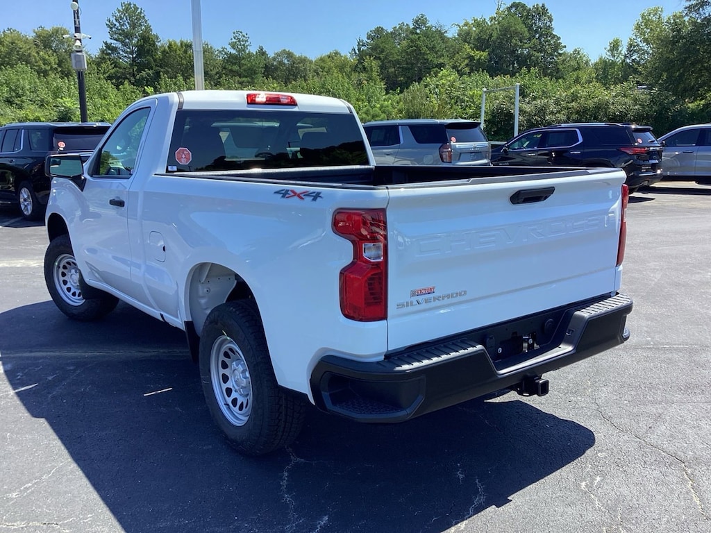 8-Speed Automatic, 4WD, Jet Black Vinyl, Preferred Equipment Group 1WT, Standard Suspension Package, Trailering Package, Work Truck Package, WT Convenience Package, WT Value Package, 2 Speakers, 2-Speaker Audio System, 220 Amp Alternator, 3.42 Rear Axle Ratio, 3.5 Monochromatic Display Driver Info Center, 4-Way Manual Driver Seat Adjuster, 4-Wheel Disc Brakes, 40/20/40 Front Split Bench Seat, ABS brakes, Air Conditioning, Apple CarPlay/Android Auto, Auto High-beam Headlights, Auto-Locking Rear Differential, Automatic Emergency Braking, Black (Semi-Gloss) Front Bumper, Black (Semi-Gloss) Rear Bumper, Bluetooth® For Phone, Brake assist, Compass, Deep-Tinted Glass, Delay-off headlights, Driver door bin, Dual front impact airbags, Dual front side impact airbags, Electric Rear-Window Defogger, Electronic Cruise Control, Electronic Stability Control, Emergency communication system: OnStar, Following Distance Indicator, Forward Collision Alert, Front anti-roll bar, Front Center Armrest w/Storage, Front Frame-Mounted Black Recovery Hooks, Front Pedestrian Braking, Front reading lights, Front wheel independent suspension, Fully automatic headlights, HD Rear Vision Camera, Heated door mirrors, Heated Power-Adjustable Outside Mirrors, Heavy-Duty Air Filter, Hitch Guidance, Illuminated entry, Locking Tailgate, Low tire pressure warning, Manual Tilt Wheel Steering Column, Occupant sensing airbag, OnStar Services Capable, Outside temperature display, Overhead airbag, Overhead console, Panic alarm, Passenger door bin, Passenger vanity mirror, Power door mirrors, Power steering, Power windows, Premium audio system: Chevrolet Infotainment 3, Radio data system, Radio: Chevrolet Infotainment 3 System, Rear reading lights, Rear step bumper, Remote Keyless Entry, Remote keyless entry, Rubberized-Vinyl Floor Covering, SiriusXM Delete, Solar Absorbing Tinted Glass, Speed control, Speed-sensing steering, Standard Tailgate, Tachometer, Teen Driver, Tilt steering wheel, Tire Pressure Monitoring System, Traction control, Trip computer, Variably intermittent wipers, Vinyl Seat Trim, Voltmeter, Wheels: 17 x 8 Ultra Silver Painted Steel, Wi-Fi Hot Spot Capable, 8-Speed Automatic, 4WD, Jet Black Vinyl, Preferred Equipment Group 1WT, Standard Suspension Package, Trailering Package, Work Truck Package, WT Convenience Package, WT Value Package.
