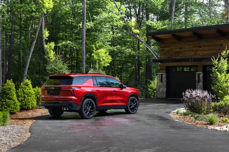 - Chevrolet Traverse RS: The RS trim adds a sporty flair to the Chevy Traverse, with 22-inch high-gloss black painted aluminum wheels, black exterior accents, and unique RS badging.