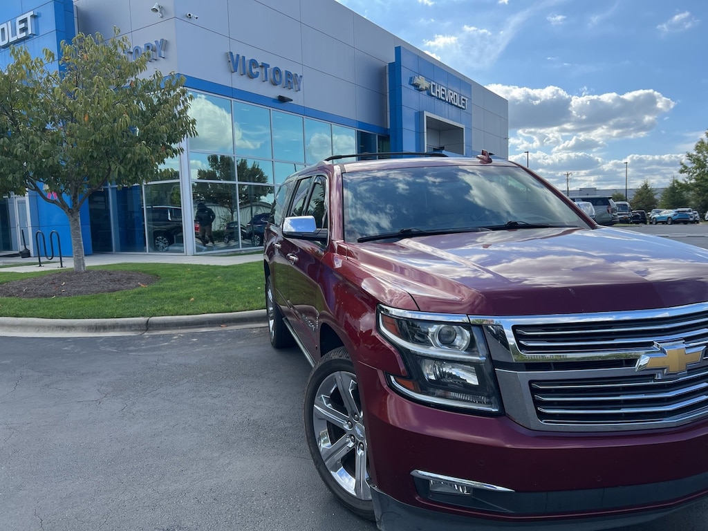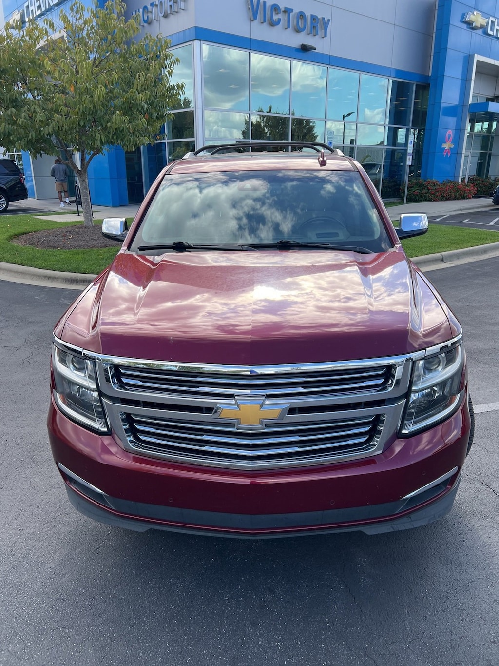 10 Speakers, 12-Volt Auxiliary Power Outlet (5), 1st & 2nd Row Color-Keyed Carpeted Floor Mats, 3.08 Rear Axle Ratio, 3rd Row 60/40 Power Fold Split-Bench, 3rd Row DVD Screen, 3rd row seats: split-bench, 4-Wheel Antilock Disc Brakes, 4-Wheel Disc & 4-Wheel VAC Power Antilock Brakes, 4-Wheel Disc Brakes, 6-Way Power Front Passenger Seat Adjuster, ABS brakes, Adaptive Cruise Control, Adaptive suspension, Adjustable pedals, Air Conditioning, Alloy wheels, AM/FM radio: SiriusXM, Apple CarPlay/Android Auto, Auto High-beam Headlights, Auto-dimming door mirrors, Auto-Dimming Inside Rear-View Mirror, Auto-dimming Rear-View mirror, Automatic temperature control, Black Assist Steps, Bodyside moldings, Bose Centerpoint Premium 10-Speaker Surround Sound, Brake assist, Bumpers: body-color, CD player, Color-Keyed Carpeting Floor Covering, Compass, Delay-off headlights, Driver door bin, Driver Inboard & Front Passenger Airbags, Driver vanity mirror, Dual front impact airbags, Dual front side impact airbags, Electronic Cruise Control w/Set & Resume Speed, Electronic Stability Control, Emergency communication system: OnStar Guidance, Enhanced Driver Alert Package, Enhanced Driver Information Center, Exterior Parking Camera Rear, Floor Console w/Storage Area, Fog Lamps, Forward Automatic Braking, Forward Collision Alert, Front & Rear Park Assist, Front anti-roll bar, Front Bucket Seats, Front Center Armrest, Front dual zone A/C, Front fog lights, Front reading lights, Front wheel independent suspension, Fully automatic headlights, Garage door transmitter, Hands Free Power Liftgate, HD Radio, Head-Up Display, Headphones, Heated & Ventilated Driver & Front Passenger Seats, Heated & Ventilated Front Reclining Bucket Seats, Heated 2nd Row Outboard Seats, Heated door mirrors, Heated front seats, Heated Leather Wrapped Steering Wheel, Heated rear seats, Heated steering wheel, High-Intensity Discharge Headlights, Illuminated entry, Intellibeam Headlamps w/Automatic High Beam On/Off, Lane Change Alert w/Side Blind Zone Alert, Lane Keep Assist w/Lane Departure Warning, Leather Shift Knob, License Plate Front Mounting Package, Low Speed Forward Automatic Braking, Low tire pressure warning, Magnetic Ride Control Suspension Package, Memory seat, Memory Settings, Navigation System, Occupant sensing airbag, OnStar Basic Plan For 5 Years, Outside temperature display, Overhead airbag, Overhead console, Panic alarm, Passenger door bin, Passenger vanity mirror, Passive Entry System, Pedal memory, Perforated Leather-Appointed Seat Trim, Power door mirrors, Power driver seat, Power Folding & Adjustable Heated Outside Mirrors, Power Liftgate, Power passenger seat, Power Release 2nd Row Bucket Seats, Power steering, Power Tilt & Telescoping Steering Column, Power Tilt-Sliding Sunroof w/Express-Open/Close, Power windows, Power-Adjustable Accelerator & Brake Pedals, Power-Retractable Assist Steps, Preferred Equipment Group 1LZ, Push Button Keyless Start, Radio: Chevrolet MyLink AM/FM Stereo w/Navigation, Rain sensing wipers, Rear air conditioning, Rear anti-roll bar, Rear audio controls, Rear Cross-Traffic Alert, Rear reading lights, Rear Seat Entertainment System, Rear window defroster, Rear window wiper, Remote keyless entry, Remote Vehicle Start, Roof rack: rails only, Roof-Mounted Luggage Rack Side Rails, Safety Alert Seat, Security system, Single-Slot CD/MP3 Player, SiriusXM NavTraffic, SiriusXM Satellite Radio, Speed control, Speed-sensing steering, Split folding rear seat, Spoiler, Steering wheel memory, Steering wheel mounted audio controls, Sun, Entertainment & Destinations Package, Tachometer, Telescoping steering wheel, Tilt steering wheel, Traction control, Trip computer, Turn signal indicator mirrors, Universal Home Remote, Variably intermittent wipers, Ventilated front seats, Voltmeter, Wheels: 20 x 9 Po