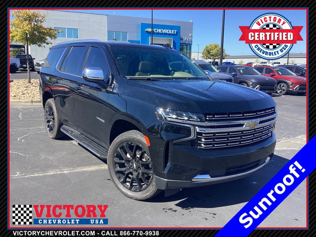 CARFAX One-Owner. Clean CARFAX.Victory Chevrolet Certified.4WD, Jet Black/Maple Sugar Leather, 10 Speakers, Bose 10-Speaker Centerpoint Surround Audio Sys Ft, Dual-Pane Power Panoramic Sunroof, Electronic Stability Control, Fully automatic headlights, Heated Steering Wheel, Hill Descent Control, LED Daytime Running Lamps, License Plate Front Mounting Package, Navigation System, Power Liftgate, Preferred Equipment Group 1LZ, 1st & 2nd Row Color-Keyed Carpeted Floor Mats, 1st, 2nd & 3rd Rows All-Weather Floor Liners (LPO), 2-Speed Active Electronic AutoTrac Transfer Case, 20 x 9 Polished Aluminum Wheels, 2nd Row Pwr Release 60/40 Split-Folding Bench Seat, 3.23 Rear Axle Ratio, 3rd Row 60/40 Power-Folding Split-Bench Seat, 3rd row seats: split-bench, 4-Wheel Disc Brakes, ABS brakes, Adaptive suspension, Air Conditioning, Alloy wheels, AM/FM radio: SiriusXM with 360L, Apple CarPlay/Android Auto, Auto High-beam Headlights, Auto-dimming door mirrors, Auto-Dimming Inside Rear-View Mirror, Auto-dimming Rear-View mirror, Auto-leveling suspension, Automatic temperature control, Brake assist, Bright Front & Rear Door Sill Plates, Bumpers: body-color, Chrome Door Handles w/Body-Color Strip, Chrome Mirror Caps, Color-Keyed Carpeting Floor Covering, Compass, Delay-off headlights, Driver & Front Outboard Passenger Airbags, Driver door bin, Driver vanity mirror, Dual Exhaust System, Dual front impact airbags, Dual front side impact airbags, Emergency communication system: OnStar and Chevrolet connected services capable, Enhanced Driver Information Center, Floor Console, Floor Console w/Storage Area, Four wheel independent suspension, Front anti-roll bar, Front Bucket Seats, Front Center Armrest, Front dual zone A/C, Front High-Back Reclining Bucket Seats, Front reading lights, Garage door transmitter, Hands-Free Rear Power Programmable Liftgate, Heated & Ventilated Driver & Front Passenger Seats, Heated 2nd Row Outboard Seats, Heated door mirrors, Heated Driver & Front Passenger Seats, Heated front seats, Heated rear seats, Heated steering wheel, Illuminated entry, Infotainment Display, Lane Change Alert w/Side Blind Zone Alert, Low tire pressure warning, Magnetic Ride Control Suspension, Memory seat, Memory Settings, Not Equipped w/4-Way Driver & Fr Pass Pwr Lumbar, Occupant sensing airbag, Outside Heated Power-Adjustable Mirrors, Outside temperature display, Overhead airbag, Overhead console, Panic alarm, Passenger door bin, Passenger vanity mirror, Perforated Leather Seat Trim, Power door mirrors, Power driver seat, Power passenger seat, Power Release 2nd Row Bucket Seats, Power steering, Power Tilt & Telescopic Steering Column, Power windows, Premium audio system: Chevrolet Infotainment 3 Premium, Radio: Chevrolet Infotainment 3 Premium System, Rain sensing wipers, Rear air conditioning, Rear anti-roll bar, Rear Cross Traffic Alert, Rear reading lights, Rear window defroster, Rear window wiper, Remote keyless entry, Remote Start, Roof rack: rails only, Safety Alert Seat, Security system, SiriusXM Radio w/360L, Speed control, Speed-sensing steering, Split folding rear seat, Spoiler, Steering wheel memory, Steering wheel mounted audio controls, Tachometer, Telescoping steering wheel, Tilt steering wheel, Traction control, Trip computer, Turn signal indicator mirrors, Universal Home Remote, Variably intermittent wipers, Ventilated front seats, Voltmeter, Wheels: 22 Multi-Spoke Gloss Black (LPO) (SRV), Wheels: 22 x 9 Steel Interim (LPO), Wireless Charging, Wrapped Steering Wheel, 4WD, Jet Black/Maple Sugar Leather, 10 Speakers, Bose 10-Speaker Centerpoint Surround Audio Sys Ft, Dual-Pane Power Panoramic Sunroof, Electronic Stability Control, Fully automatic headlights, Heated Steering Wheel, Hill Descent Control, LED Daytime Running Lamps, License Plate Front Mounting Package, Navigation System, Power Liftgate, Preferred Equipment Group 1LZ.Exit 12 or 14 on 485. Call Now (866) 900-6224.