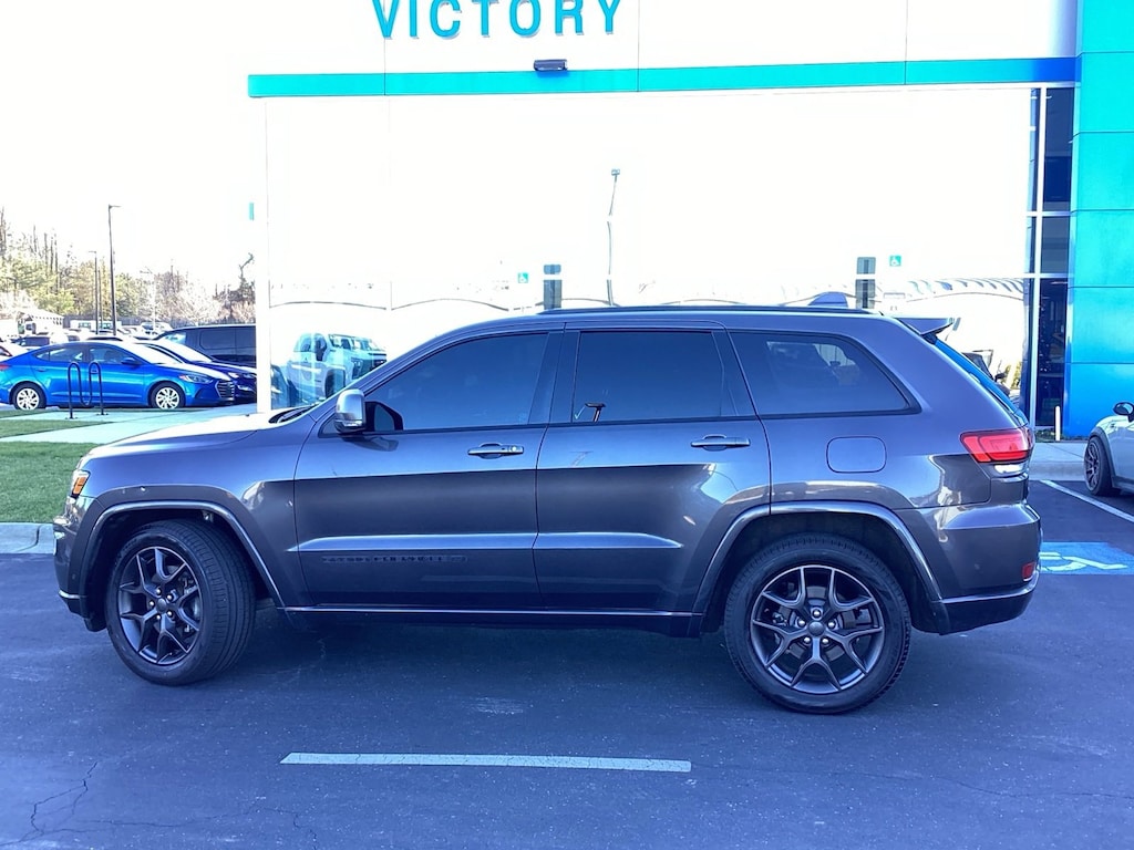 Clean CARFAX.Odometer is 885 miles below market average!Victory Chevrolet Certified. 19/26 City/Highway MPG506 Watt Amplifier, 80th Anniversary Luxury Group, Active Noise Control System, Adaptive Cruise Control w/Stop, Advanced Brake Assist, Berber Floor Mats w/80th Anniversary Tag, Black Roof Molding, Body Color Claddings, Body Color Door Handles, Body Color Shark Fin Antenna, Cargo Compartment Cover, Dark Day Light Opening Moldings, Dark Headlamp Bezel Finish, Dark Lens Taillamps, Dual-Pane Panoramic Sunroof, Front Accent/Body Color Fascia, Full Speed FWD Collision Warn Plus, Granite Crystal Exterior Accents, Granite Crystal Exterior Badging, Granite Crystal Exterior Mirror Caps, Granite Crystal/Black Grille, Heated Second Row Seats, Jeep 80th Anniversary Badges, Jeep 80th Anniversary Edition, Lane Departure Warning Plus, Leather Trimmed Bucket Seats (JY), LT. Tungsten Interior Accent Stitching, Parallel & Perp Park Assist w/Stop, Piano Black/Anod. Gunmetal Interior Accents, Power Tilt/Telescope Steering Column, Premium Alpine Speaker System, Quick Order Package 2BK 80th, Rain Sensitive Windshield Wipers, Rear Accent/Body Color Fascia, Ventilated Front Seats, Wheels: 20 x 8.0 Granite Crystal Aluminum, 1-Year SiriusXM Guardian Trial, 3.27 Rear Axle Ratio, 4-Wheel Disc Brakes, 4G LTE Wi-Fi Hot Spot, 6 Speakers, 8.4 Touchscreen Display, ABS brakes, Air Conditioning, Alloy wheels, AM/FM radio: SiriusXM, Anti-whiplash front head restraints, Apple CarPlay, Apple CarPlay/Android Auto, Audio memory, Auto-dimming door mirrors, Auto-dimming Rear-View mirror, Automatic temperature control, Brake assist, Bumpers: body-color, Compass, Delay-off headlights, Driver door bin, Driver vanity mirror, Dual front impact airbags, Dual front side impact airbags, Eco Suspension I, Electronic Stability Control, Emergency communication system: SiriusXM Guardian, Four wheel independent suspension, Front anti-roll bar, Front Bucket Seats, Front Center Armrest w/Storage, Front dual zone A/C, Front fog lights, Front reading lights, Fully automatic headlights, Garage door transmitter, Google Android Auto, GPS Antenna Input, GPS Navigation, HD Radio, Heated door mirrors, Heated front seats, Heated steering wheel, Illuminated entry, Integrated Voice Command w/Bluetooth, Knee airbag, Leather Shift Knob, Leather Trimmed Bucket Seats, Low tire pressure warning, Memory seat, Navigation System, Occupant sensing airbag, Outside temperature display, Overhead airbag, Overhead console, Panic alarm, ParkView Rear Back-Up Camera, Passenger door bin, Passenger vanity mirror, Power door mirrors, Power driver seat, Power Liftgate, Power moonroof, Power passenger seat, Power steering, Power windows, Radio data system, Radio: Uconnect 4C Nav w/8.4 Display, Rear anti-roll bar, Rear reading lights, Rear seat center armrest, Rear window defroster, Rear window wiper, Remote keyless entry, Roof rack: rails only, Security system, SiriusXM Satellite Radio, SiriusXM Traffic Plus, SiriusXM Travel Link, Speed control, Speed-sensing steering, Speed-Sensitive Wipers, Split folding rear seat, Spoiler, Steering wheel mounted audio controls, Tachometer, Telescoping steering wheel, Tilt steering wheel, Traction control, Trip computer, Turn signal indicator mirrors, Variably intermittent wipers, Wheels: 18 x 8.0 Tech Gray Diamond Cut, 506 Watt Amplifier, 80th Anniversary Luxury Group, Active Noise Control System, Adaptive Cruise Control w/Stop, Advanced Brake Assist, Berber Floor Mats w/80th Anniversary Tag, Black Roof Molding, Body Color Claddings, Body Color Door Handles, Body Color Shark Fin Antenna, Cargo Compartment Cover, Dark Day Light Opening Moldings, Dark Headlamp Bezel Finish, Dark Lens Taillamps, Dual-Pane Panoramic Sunroof, Front Accent/Body Color Fascia, Full Speed FWD Collision Warn Plus, Granite Crystal Exterior Accents, Granite Crystal Exterior Badging, Granite Crystal Exterior Mirror Caps, Granite Crystal/Black Grille, Heated Second Row Seats, Jeep 80th