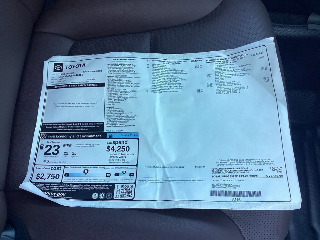 2.4L 4-Cylinder, Java w/SofTex Synthetic Leather Seat Trim or Leather Seat Trim, 14-Speaker Premium JBL Audio, 8-Way Power Seats, ABS brakes, Alloy wheels, Blind Spot Monitor w/Lane Change Assist, Compass, Digital Key Capability, Electric Interior Rear View Mirror, Electronic Stability Control, Fridge w/Floor Cover Rear Console Box, Front Cross Traffic Alert, Front dual zone A/C, Head-Up Display (HUD), Heated front seats, Illuminated Entry, Lane Change Assist (LCA), Leather Seat Trim, Low tire pressure warning, Power Tilt/Slide Moonroof w/Power Sunshade, Pre-Collision System, Premium Package, Qi-Compatible Wireless Charging, Remote keyless entry, Side Step & Step Cover, Speed control, Traction control, Traffic Jam Assist.